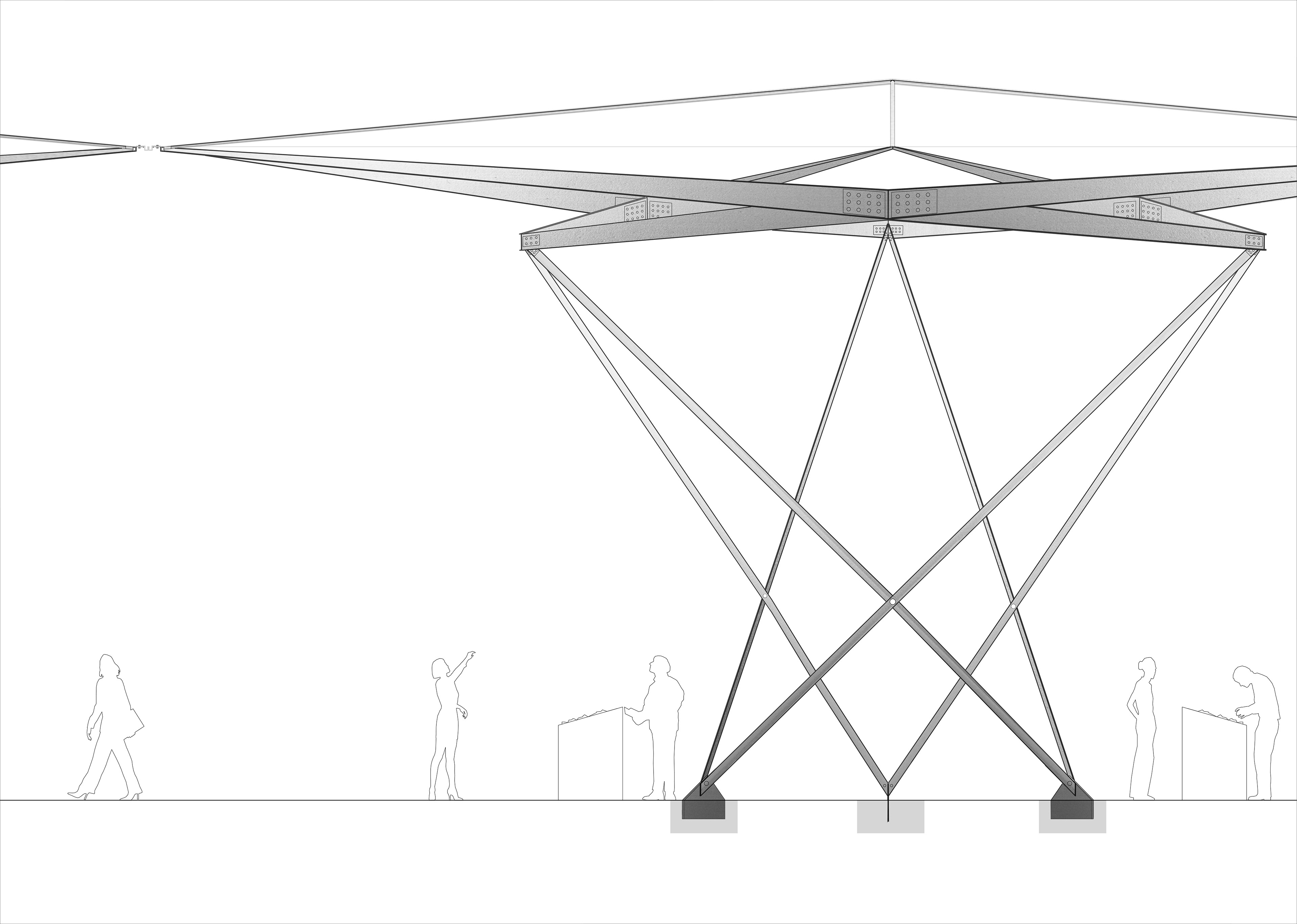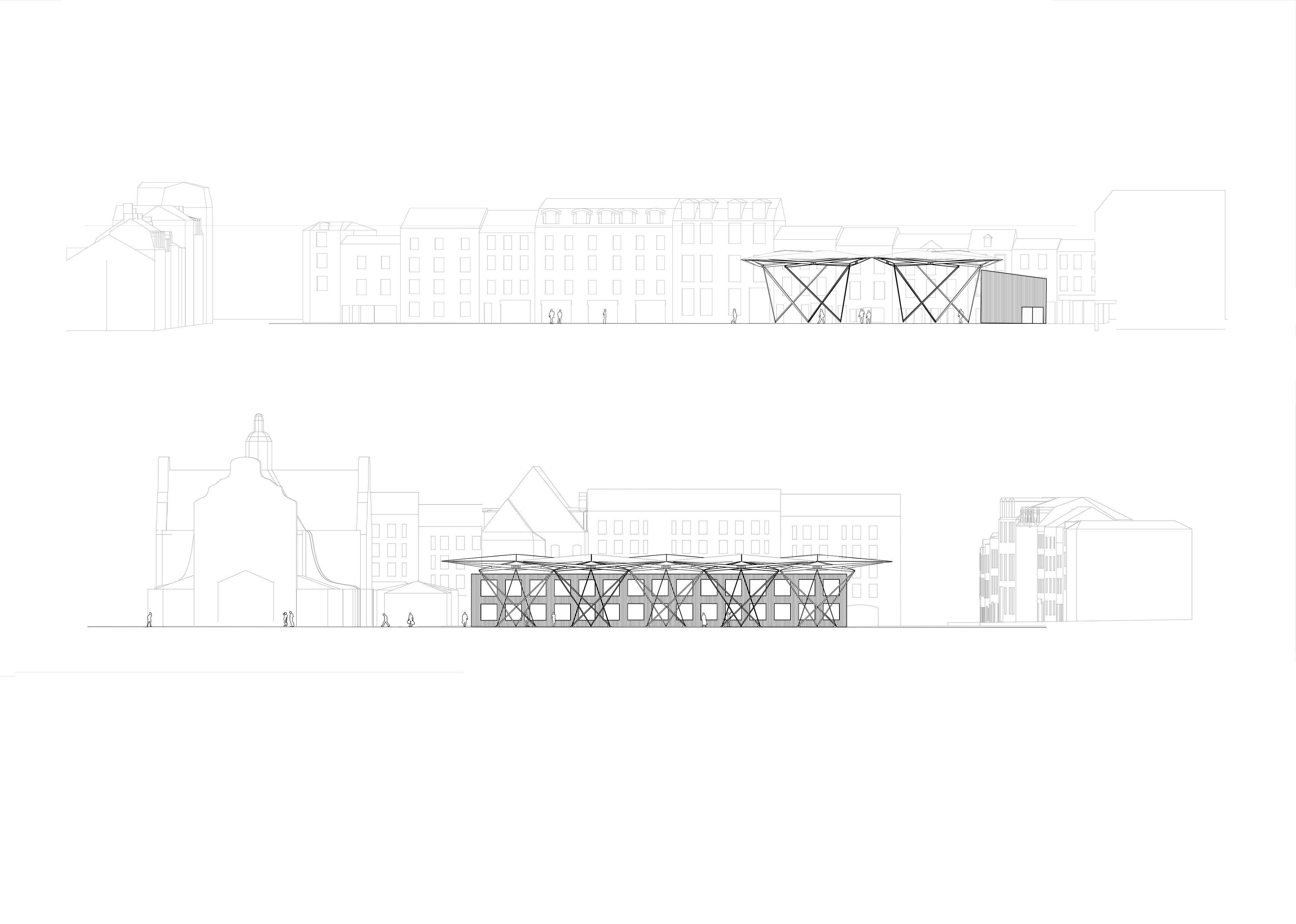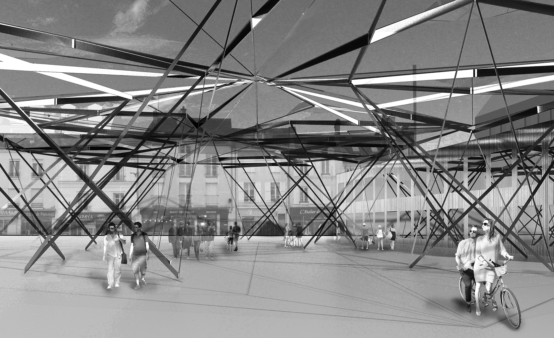 The Market Hall is composed of 10 triangular modules. The structure of the 3D module is thought to make it as light as possible. The 3D triangular geometry of the iron structure allows it cover a maximum surface with a minimum weight